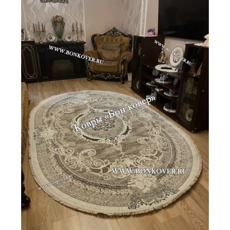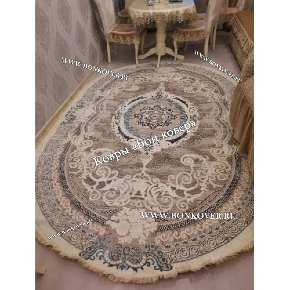 Изящный Овальный Ковер Для Гостиной Медальон Белый с Синим Дизайн 29944 наполняет интерьер жилого пространства теплом и уютом, гармонично сочетает в себе изящество и красоту. Он создан из экологически чистого сырья, прочный и долговечный.